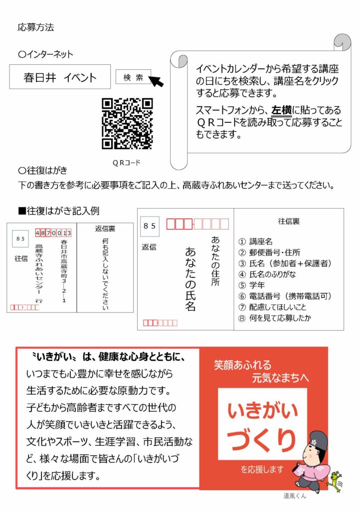 問い合わせ先:いきがい創生部高蔵寺ふれあいセンター